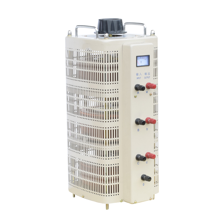TSGC2、TSGC2J系列三相接觸式調(diào)壓器,又稱接觸式自耦調(diào)壓器,實(shí)質(zhì)上是一種輸出(端)電壓可以調(diào)節(jié)的自耦變壓器。其工作原理主要是利用電刷在調(diào)壓器線圈上的滑動(dòng),通過改變電刷與線圈的接觸位置,從而改變一次和二次線圈的匝數(shù)比,實(shí)現(xiàn)對輸出電壓的調(diào)節(jié)。當(dāng)電壓變高時(shí),調(diào)壓器線圈的磁場會增加,引起滑動(dòng)變壓器中電極的位移,以減小輸出電壓;反之,當(dāng)電壓變低時(shí),調(diào)壓器線圈的磁場會減小,電極會向下滑動(dòng),以增加輸出電壓。
