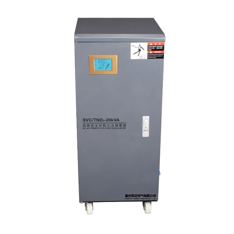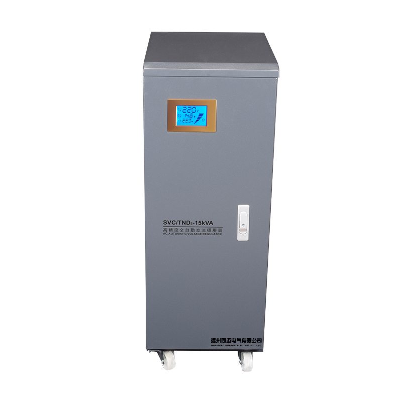 TND5系列單相穩(wěn)壓器的工作原理基于電壓監(jiān)測(cè)和自動(dòng)調(diào)節(jié)機(jī)制。當(dāng)電網(wǎng)電壓不穩(wěn)定或負(fù)載變化時(shí),穩(wěn)壓器內(nèi)部的自動(dòng)采樣控制電路會(huì)發(fā)出信號(hào),并驅(qū)動(dòng)相應(yīng)的調(diào)節(jié)機(jī)構(gòu)(如伺服電機(jī)),調(diào)整自耦調(diào)壓器碳刷的位置或改變線圈匝數(shù)比,從而使輸出電壓調(diào)整到額定值并達(dá)到穩(wěn)定狀態(tài)。這種自動(dòng)調(diào)節(jié)過程能夠確保輸出電壓的穩(wěn)定性和可靠性。